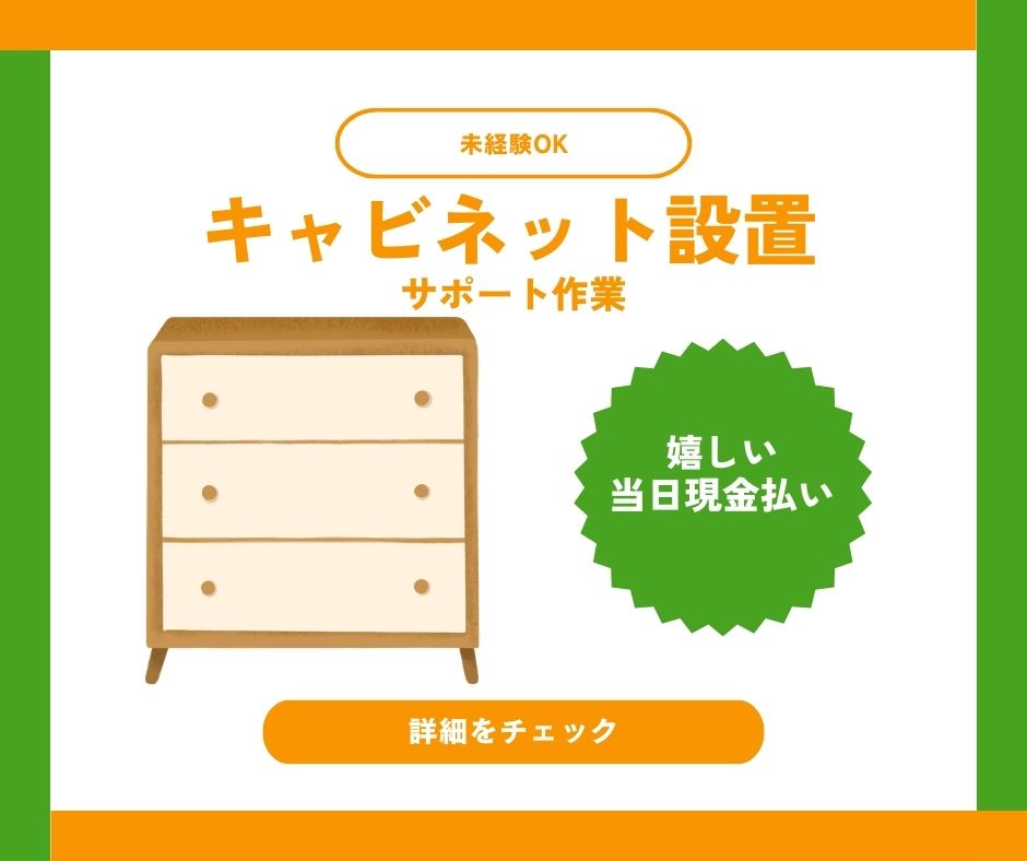 【天理市】現金当日払☆時給1200円!キャビネットの設置