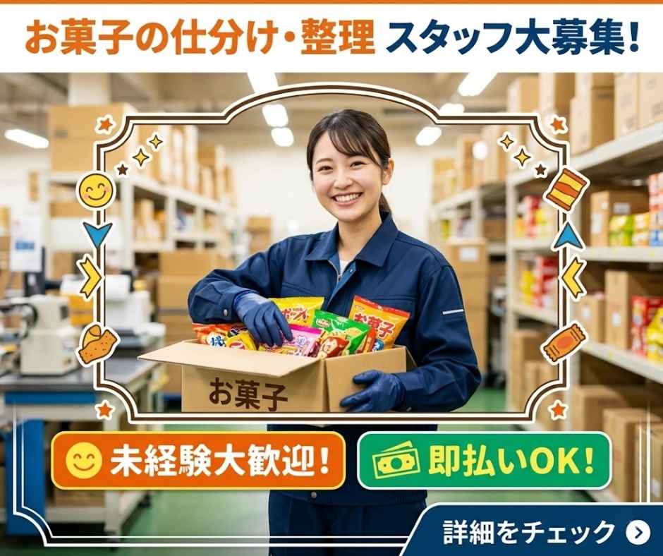 【即払OK】 ジュースやカップ麺などの商品仕分けスタッフ募集★