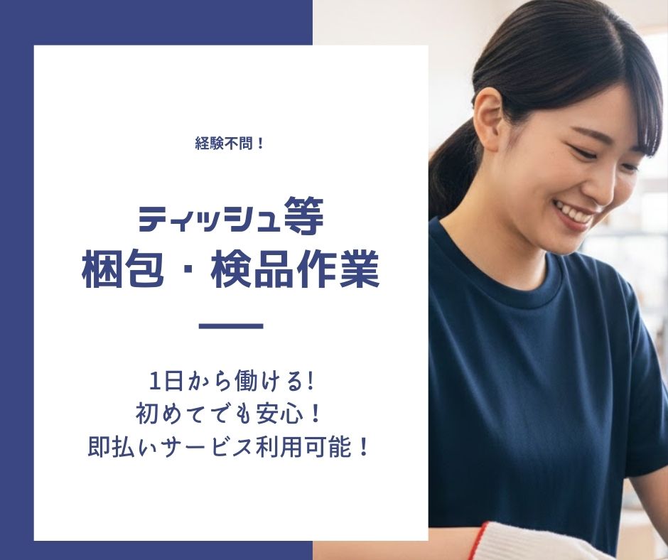 ≪直行枠≫すぐに覚えられる!ティッシュ等の検品・梱包作業