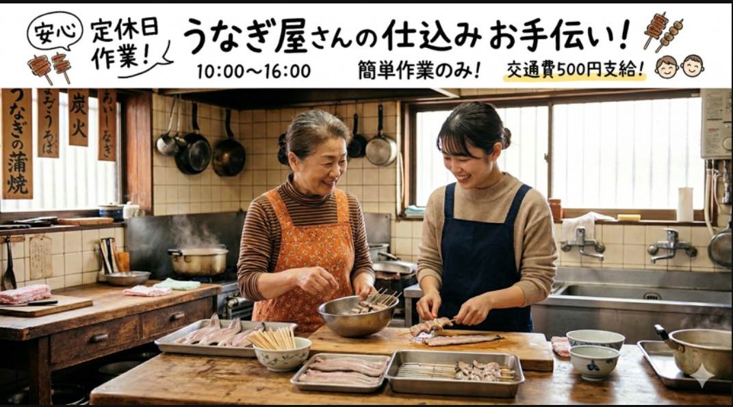 うなぎ屋?!定休日に仕込み補助スタッフ募集