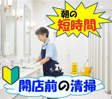 ※開店前の清掃作業(掃き/拭き/備品補充/ごみ捨て等)