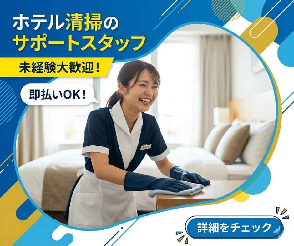 $【即払OK】客室清掃作業♪時給1,100円+交通費300円★