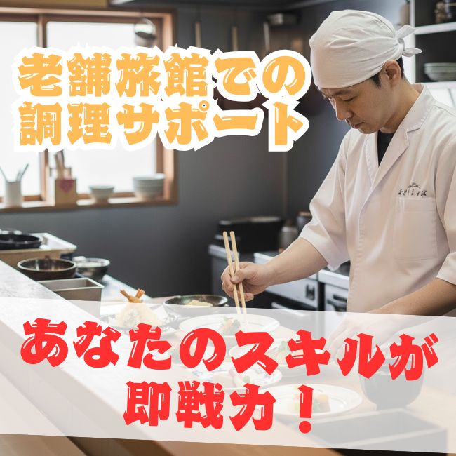 老舗旅館での調理補助スタッフ募集!住み込み・温泉利用可