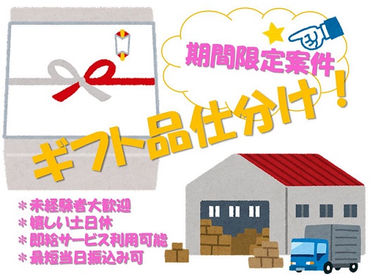 $即日振込♪倉庫内で食品の仕分けスタッフ募集!