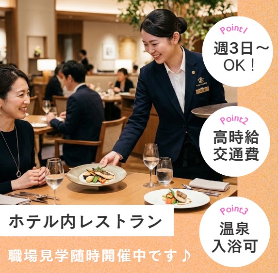 履歴書不要!『ホテル内レストランで接客♪』即日回答◎