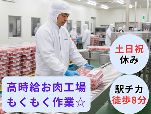 駅から徒歩8分/高時給☆お肉工場もくもく作業