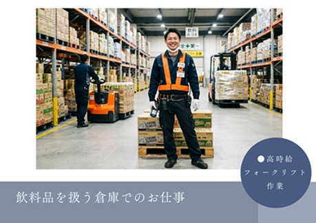 【千代田町】飲料を扱う物流倉庫でのフォークリフトのお仕事♪