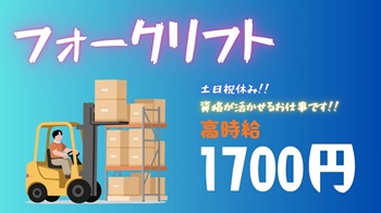 ★★ 高時給1700円!フォークリフトスタッフ!(*^^*) ★★
