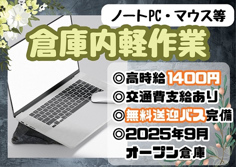 【無料送迎バス有】時給1400+交◇倉庫内軽作業◇