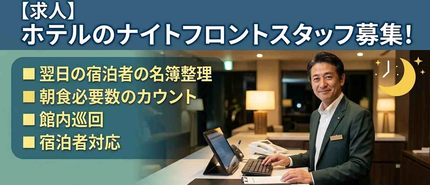 【狭山市】時給1300円+交通費/ホテルのナイトフロント業務