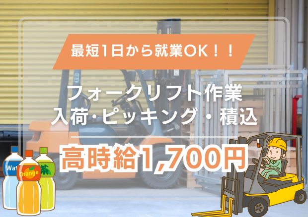 《時給1600円!!》 フォークリフトでの入出庫作業♪ 車通勤◎