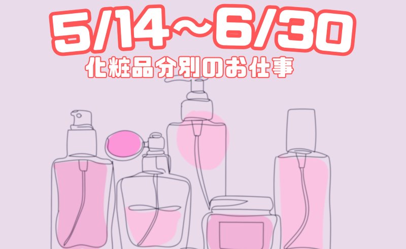 !最短5月14日から開始! << 化粧品(香水、リップ、ファンデーション)の分別作業 >>