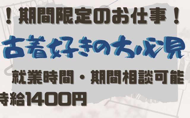 期間限定1~2か月♪古着の入出荷//高時給1400円