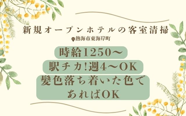 【時給1250円~】客室清掃作業等/髪色ネイルOK♪