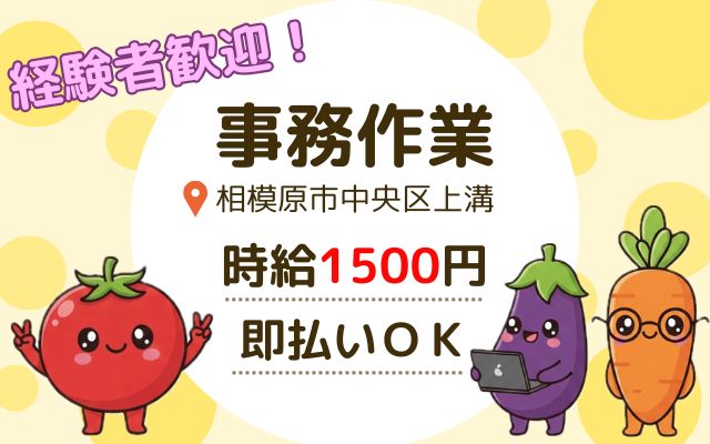 経験者歓迎!!【相模原】時給1500円*人気の事務案件♪