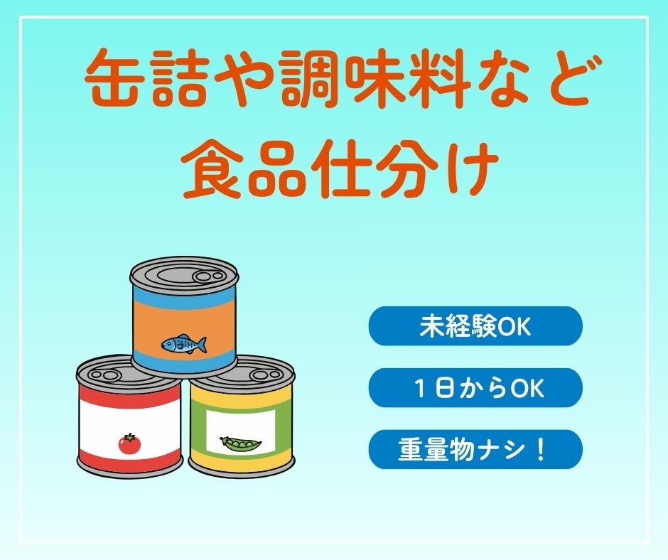 缶詰や調味料などの仕分け★黒埼IC~車17分