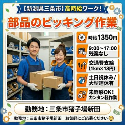 【三条市】未経験歓迎!部品のピッキング、梱包作業