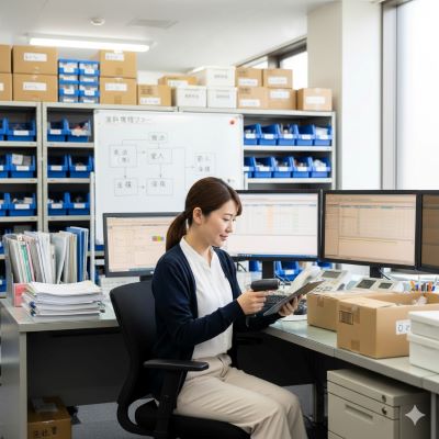 専用システムへの入力、受電やメールでの納期、見積などの返答や対応など