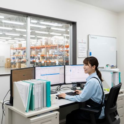 部材の発注・受入業務、各種処理管理、製品の出荷処理業務、工具の在庫管理・発注業務、PCを用いたデータ入力業務を行います!