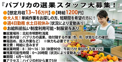 北杜市【月収13~16万】カラフルなパプリカの箱詰め