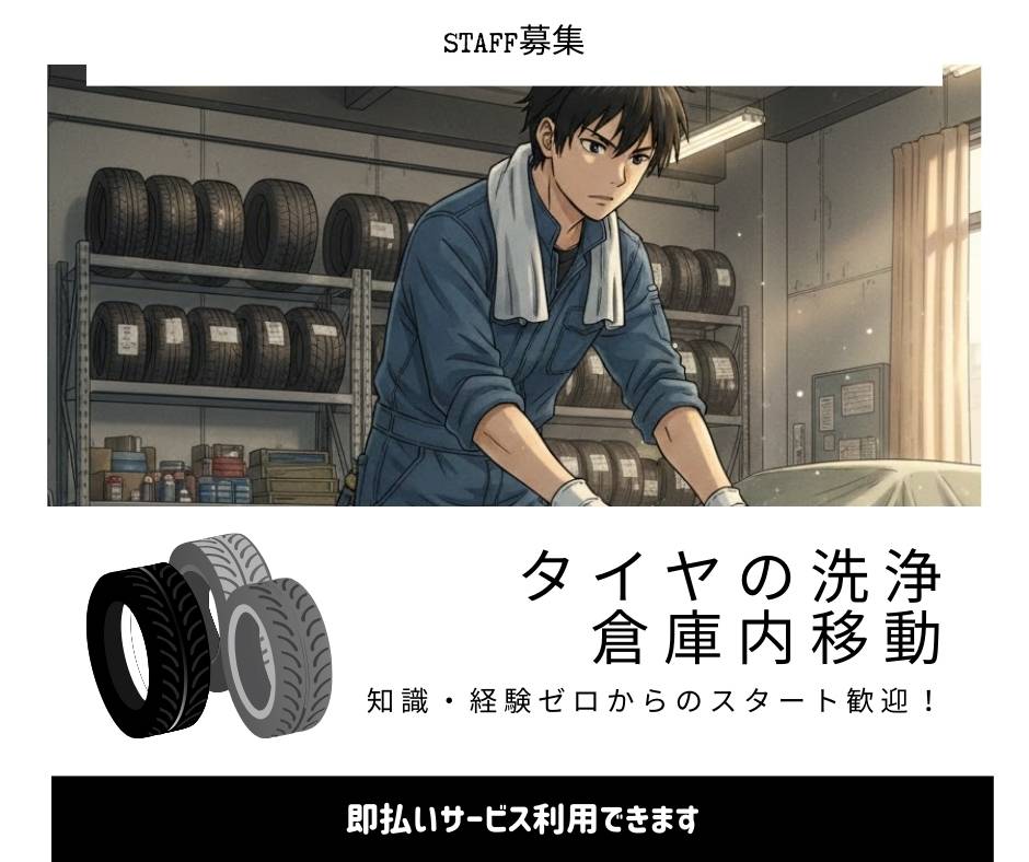 1400+交通費200円タイヤの洗浄・倉庫内移動/高森町