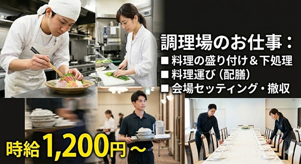 【時1200円+交300円】調理場での盛付や下処理など