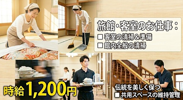 【時1200円+交300円】客室清掃や旅館内の清掃