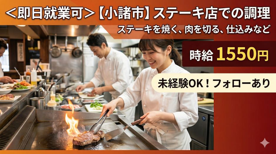 ステーキで有名なあのお店!☆レストランでの調理のお仕事☆未経験者歓迎♪