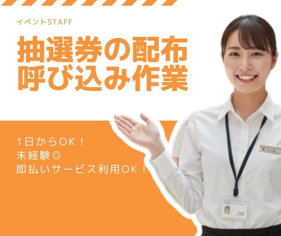 店舗出入り口での抽選券を配布・呼び込みをしていただくお仕事です
