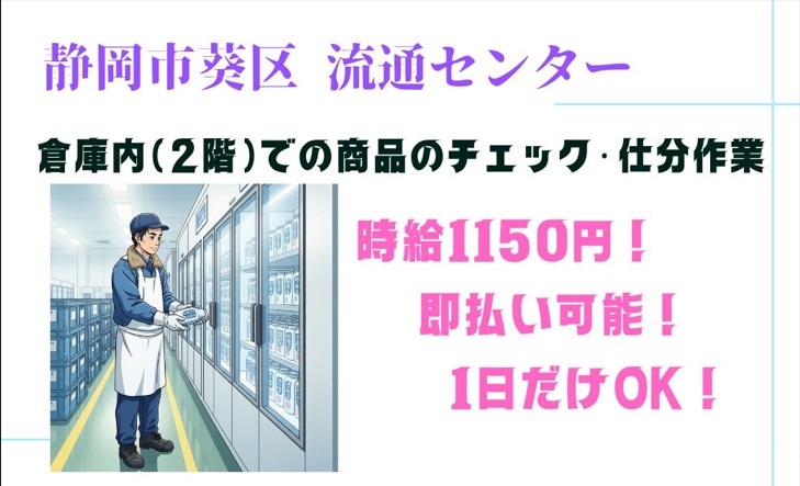 静岡県の倉庫内軽作業(仕分・ピッキング・梱包など)のバイト・アルバイト求人情報