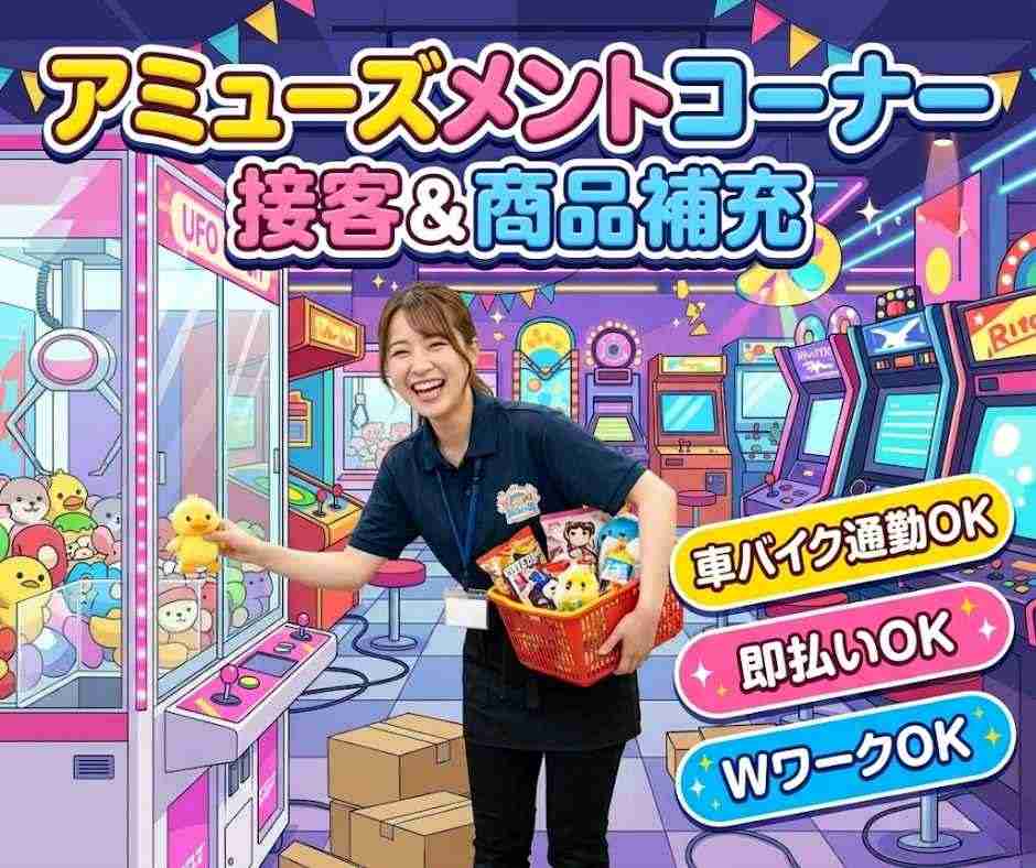 アニメやゲームグッズなどのホビーショップにて、簡単な景品整理や配置修正などのお仕事です!!