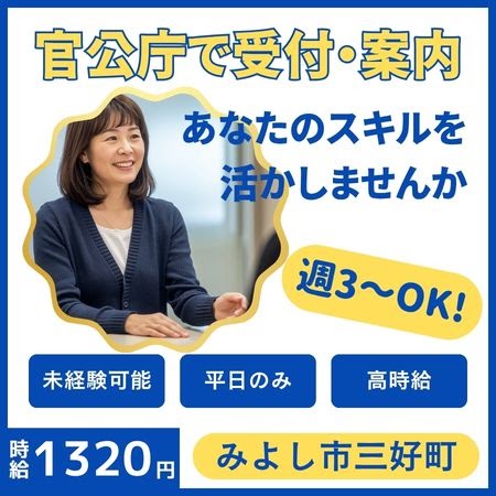即払【日進市】時給1300円!マイナンバーの窓口業務★