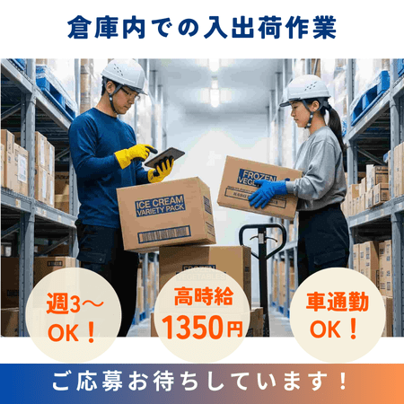 働きやすい倉庫内作業です!!<時給1300円/交通費定額支給>