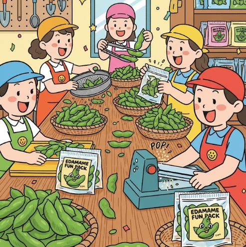 出来上がった豆腐をトレーに入れる+商品の検品作業です!