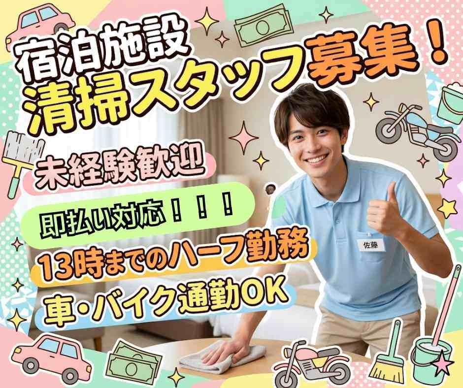 【作業内容】旅館内の清掃作業(トイレ・風呂も含む)