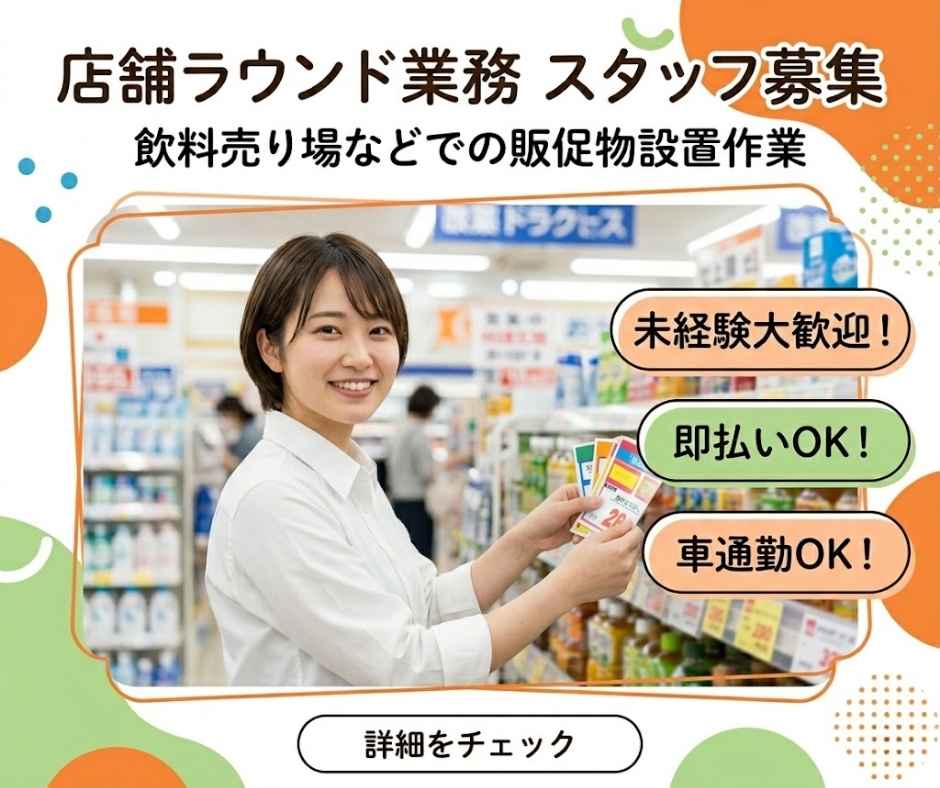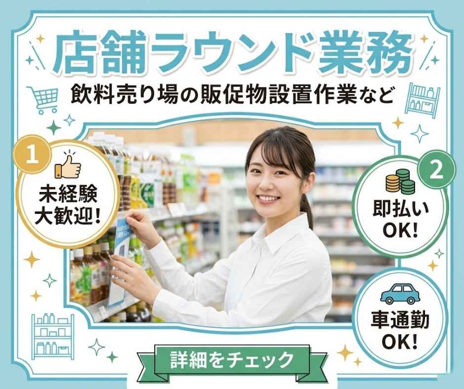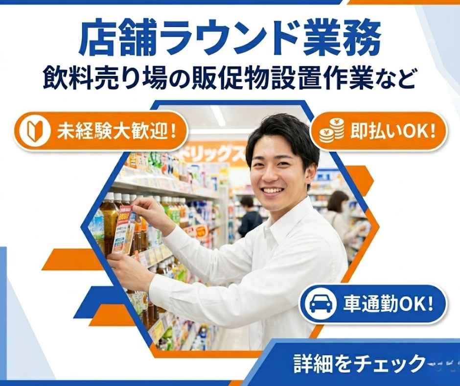 ①直行直帰の店舗ラウンダー☆彡売場での軽作業