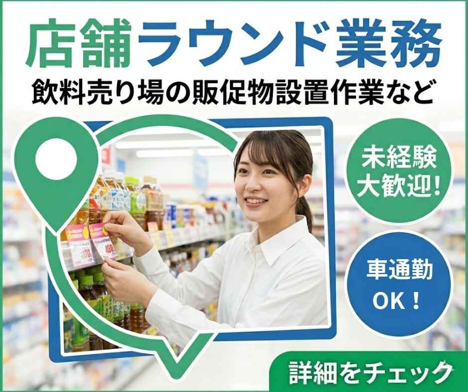 ・大人気☆直行直帰の店舗ラウンドのお仕事!車通勤できる方、歓迎♪