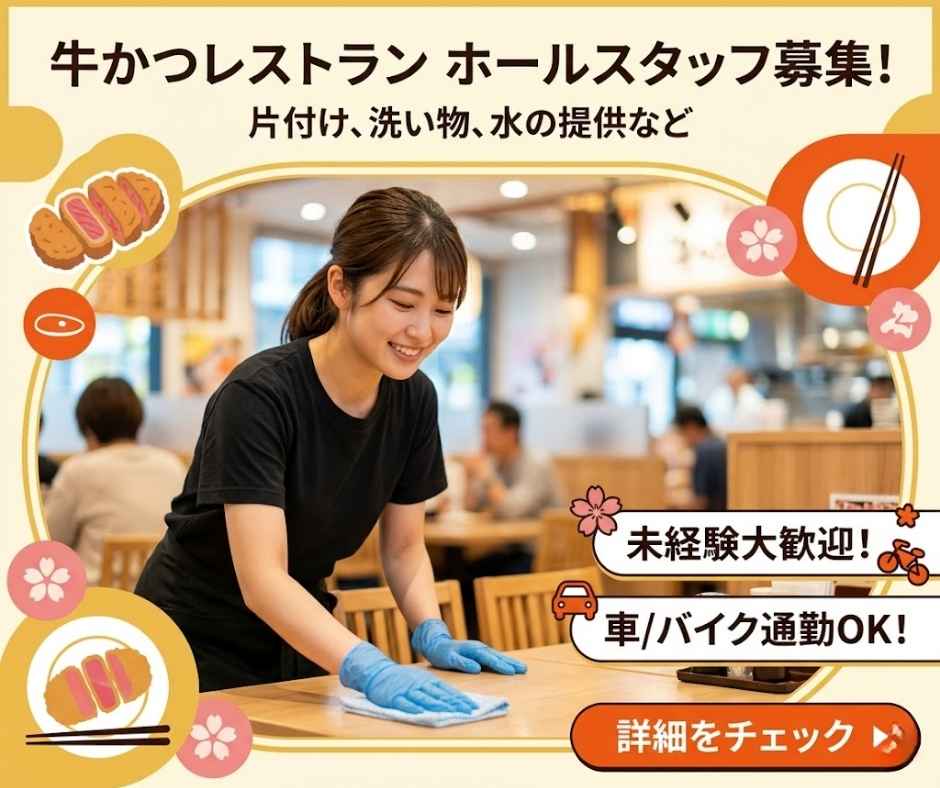 長崎市/飲食店内でのホール作業/時給1200円♪