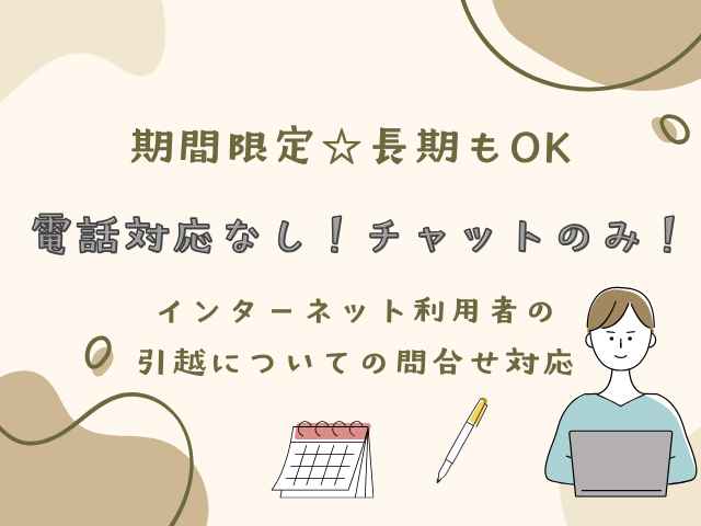 【業務内容】インターネット利用者の引越についての問合せセンター(チャット対応のみ)