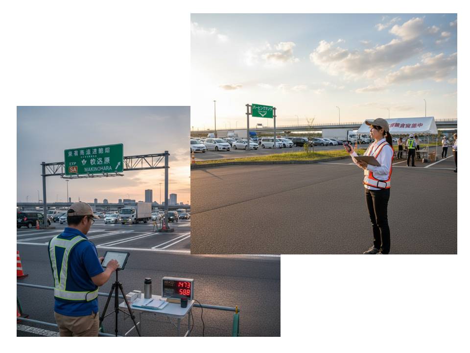 サービスエリアでの立寄人数・立寄台数調査のお仕事です。