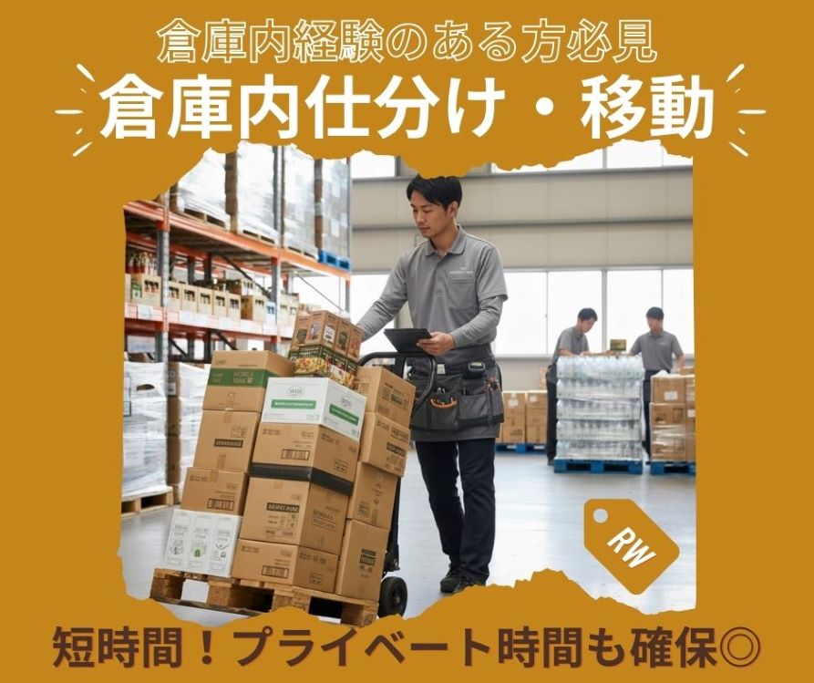 【検索ワード】 単発 単日 スポット マイカー バイク 当日現金 仕分け 倉庫内 軽作業 ...