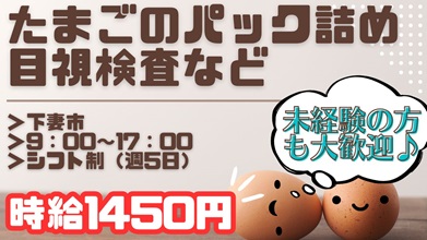 【大募集】高時給1450円!たまごのパック詰め・検品・出荷
