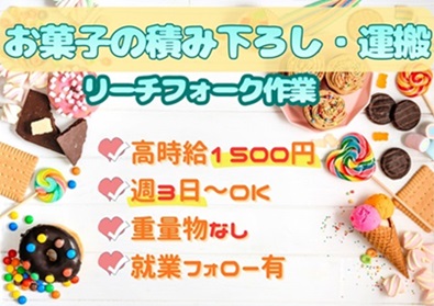 【時給1500円】 週3日~シフト相談可★お菓子//フォークリフト業務