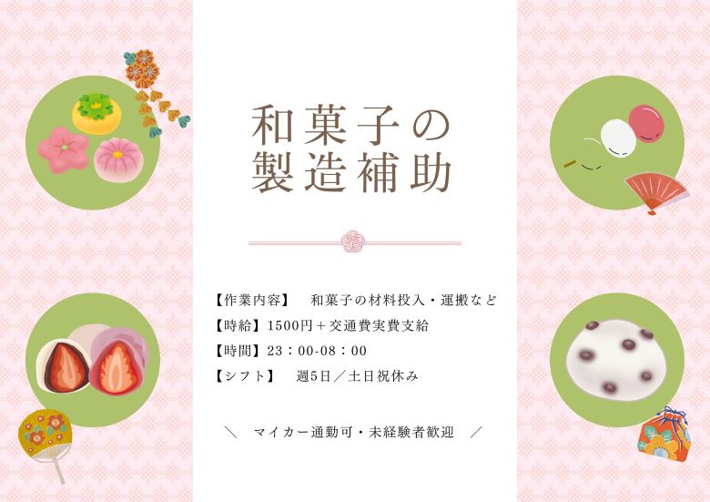 1450円!+交★長期就業OK★《夜勤》和菓子の仕込み作業