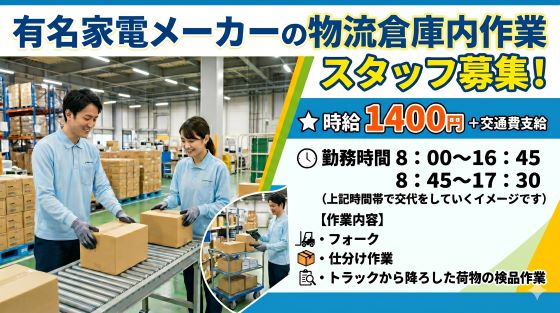 時給1400円+交!経験者歓迎★フォークリフト&検品作業
