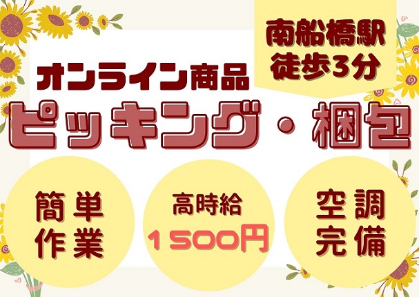 【駅近徒歩3分】時給1500円!オンライン商品ピッキング・梱包◇