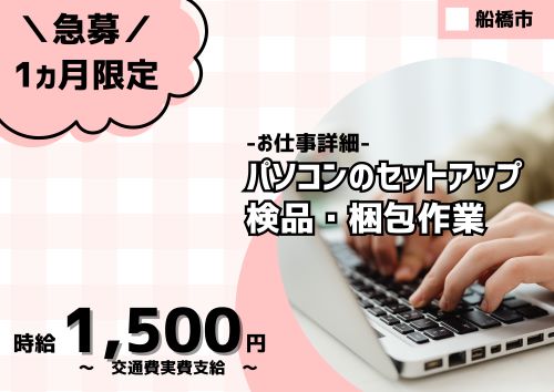 ■急募■ 時給1,500円+交通費/PCセットアップ゙業務♪