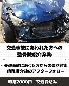 【時給2000円】交通事故にあわれた方への整骨院紹介業務