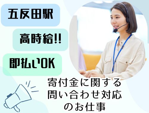 【五反田駅徒歩10分】高時給1800円★寄付金コールセンター