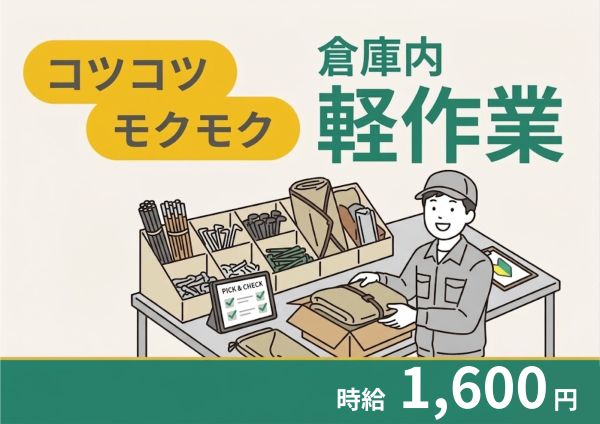 資材・日用品・お菓子などの格納・ピッキング業務!